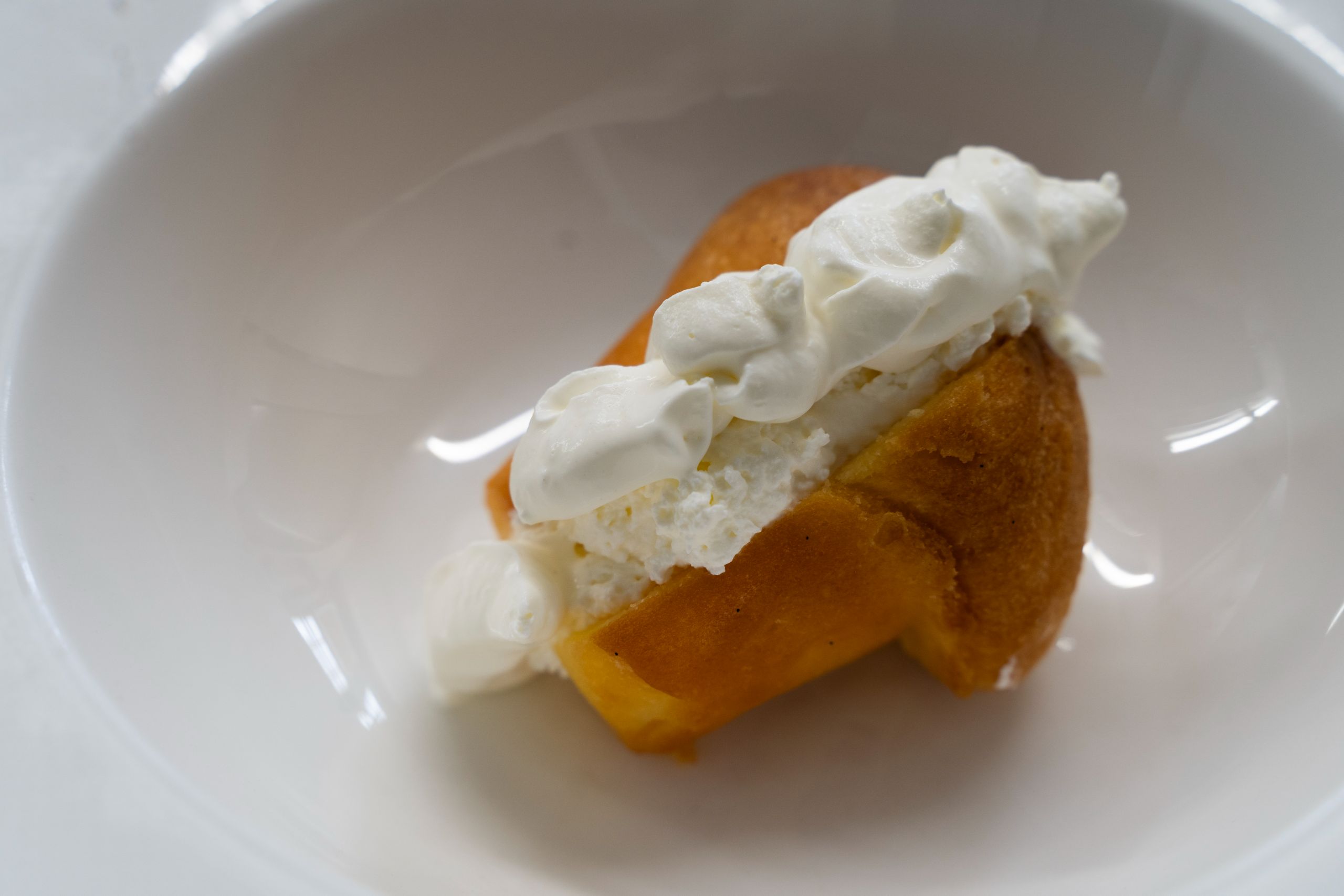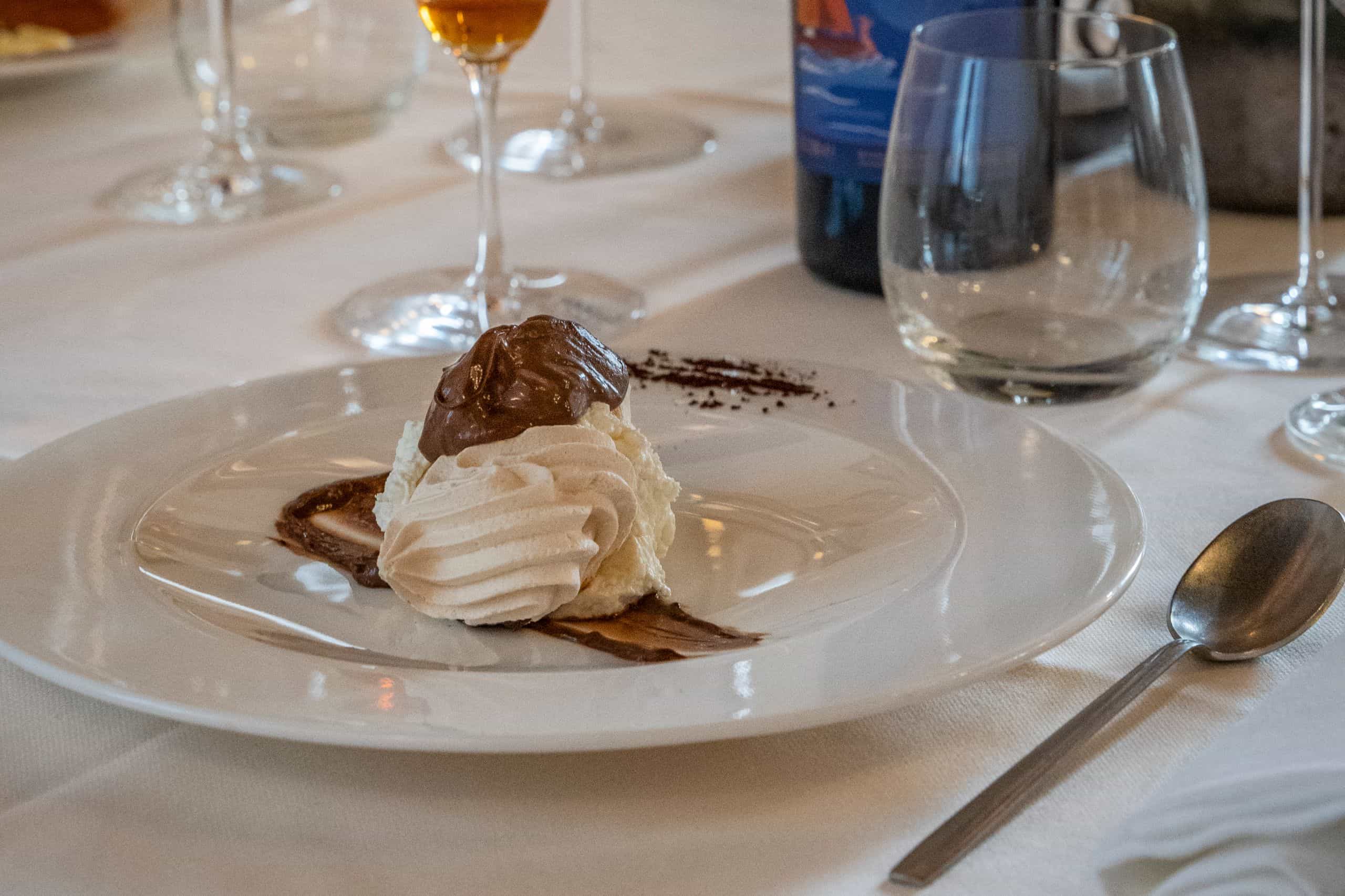 (Meringa artigianale ripiena di panna senza zucchero e una colata di cioccolato) 3-7