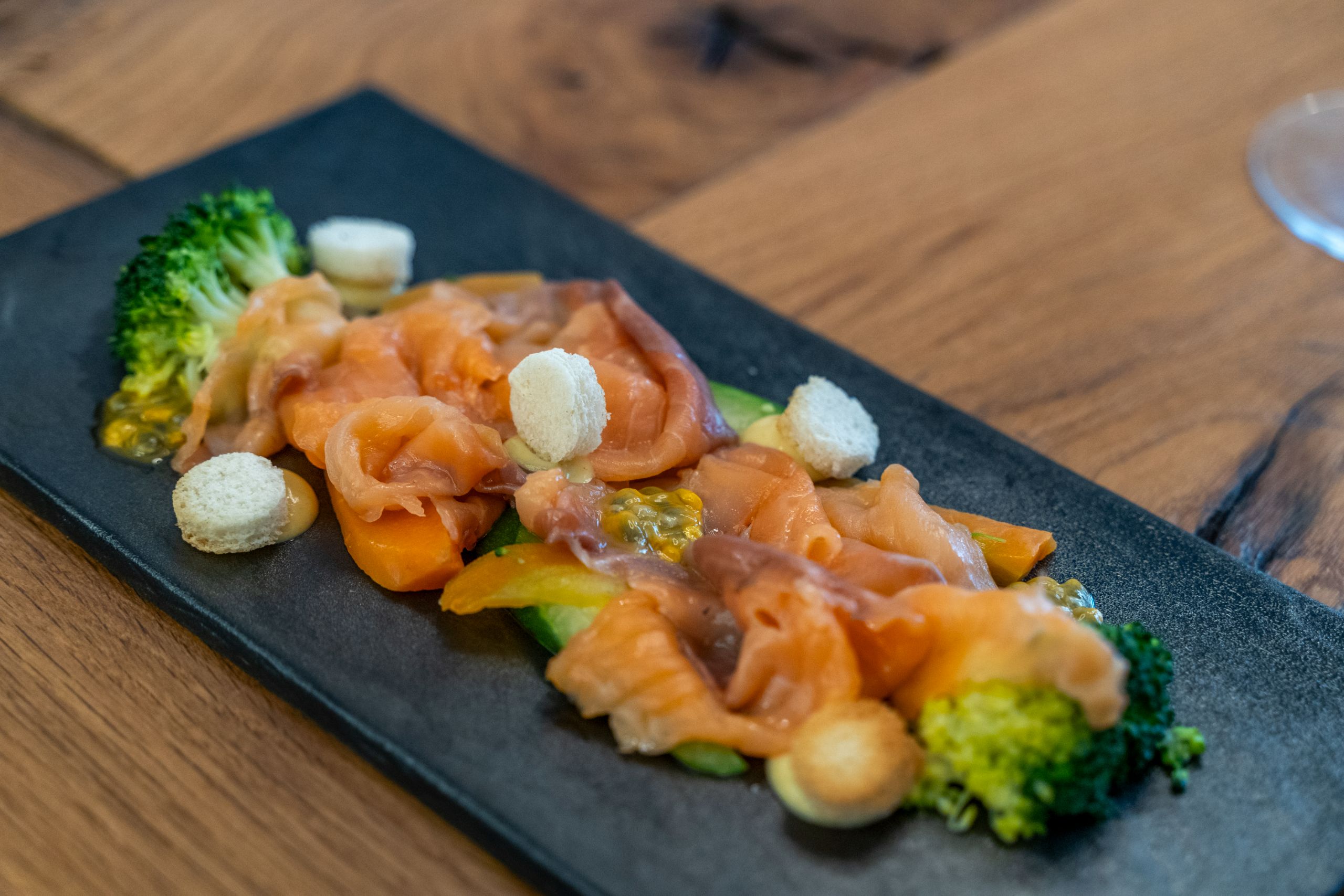FILETTO DI SGOMBRO CON EMULSIONE DI BUFALA E CILIEGINI DI POMODORI CONFIT (1,4,7)€27