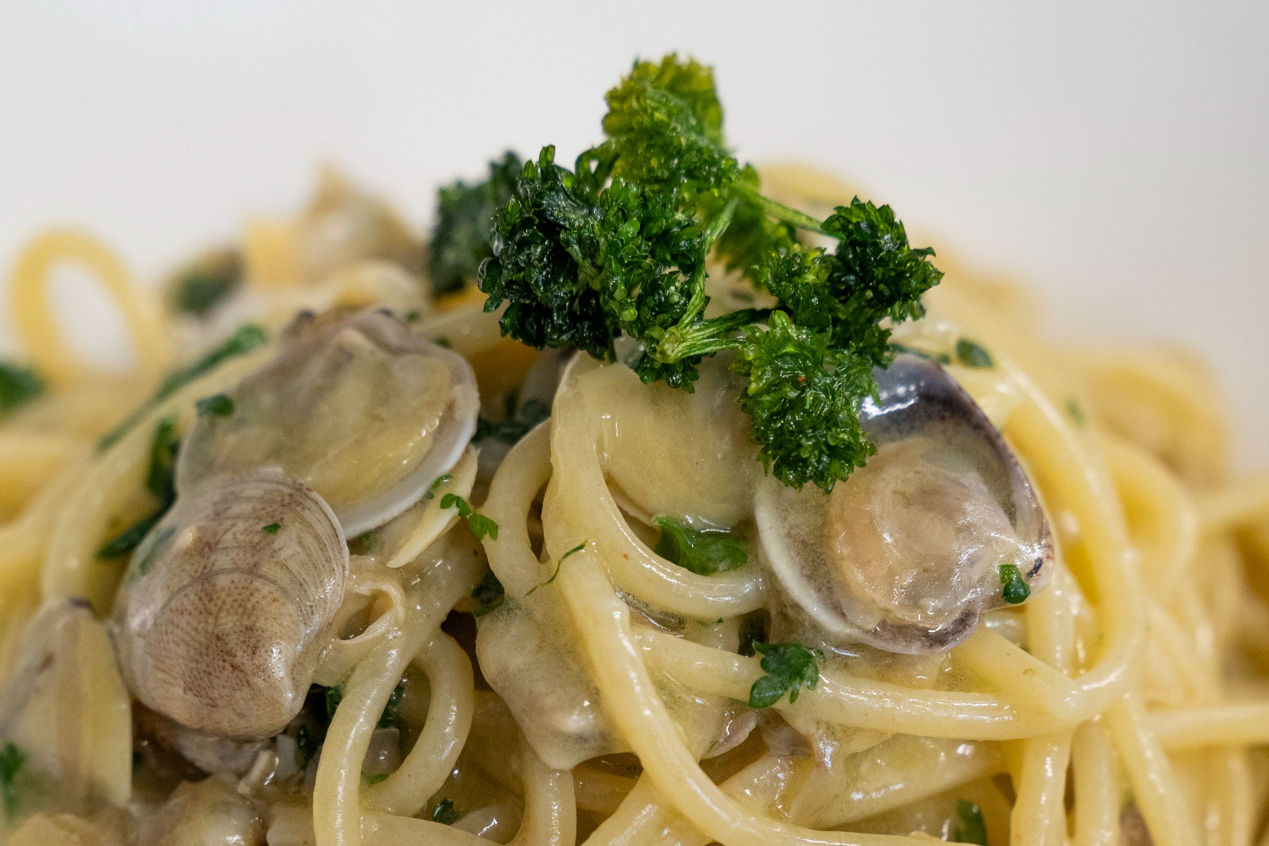 SPAGHETTI ALLE VONGOLE PEVARASSE ( 1, 4, 14)€18