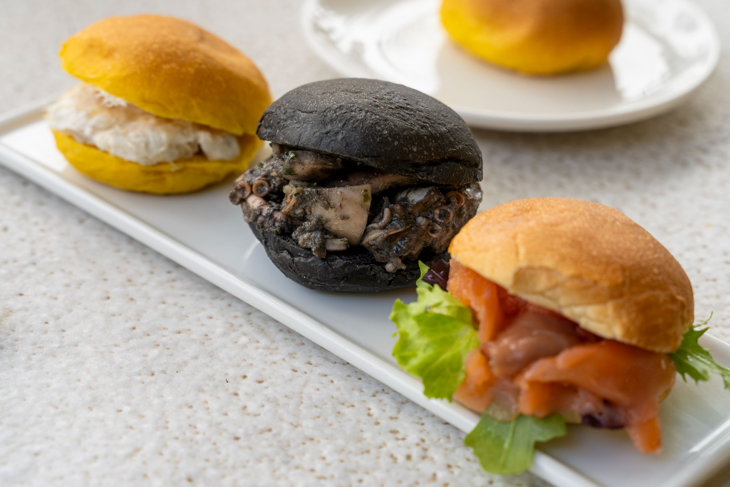 (piccoli paninetti della tradizione spagnola caldi ripieni ai tre mari: baccalà, seppia e salmone)